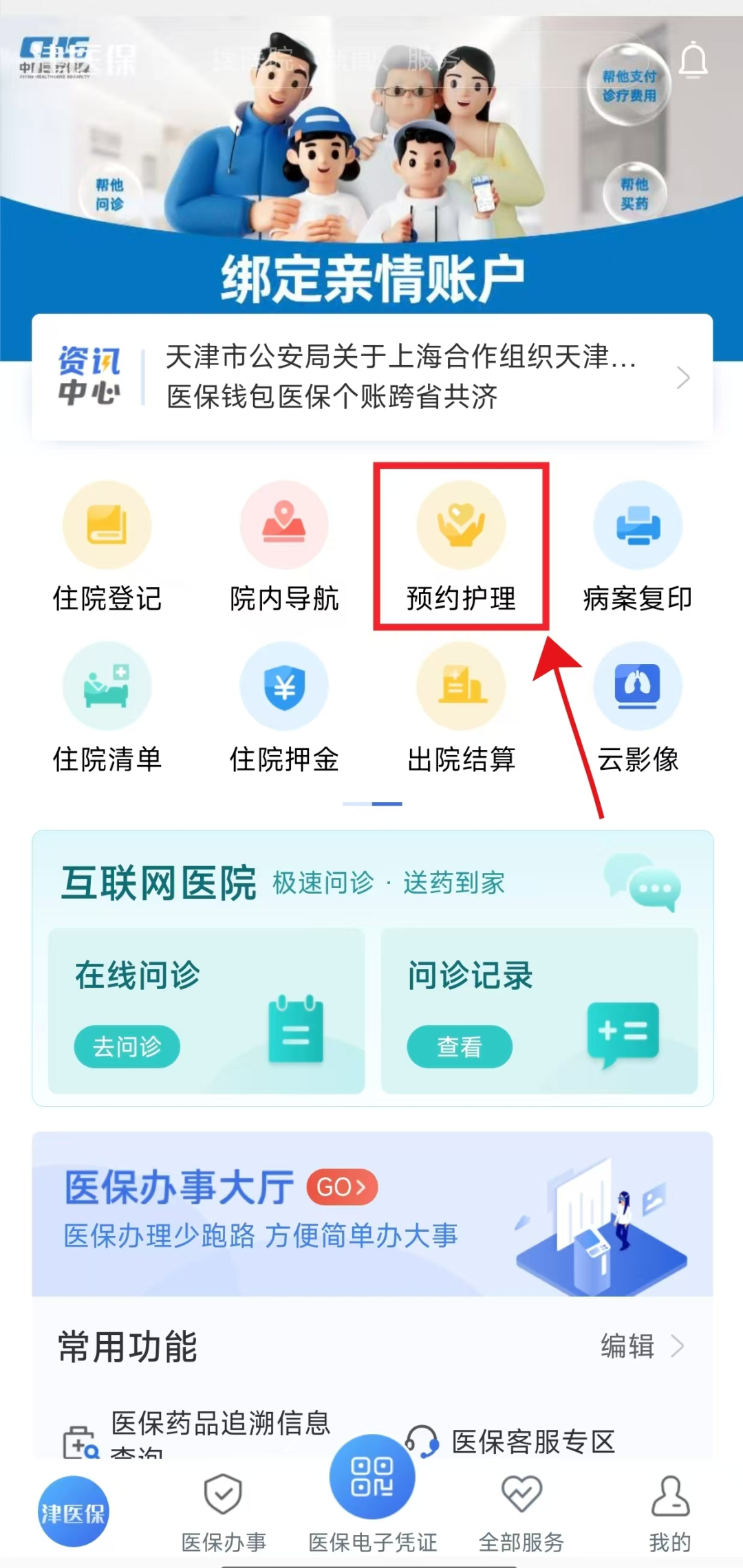 如果不是患者本人津医保,要绑定患者信息,按照以下操作即可