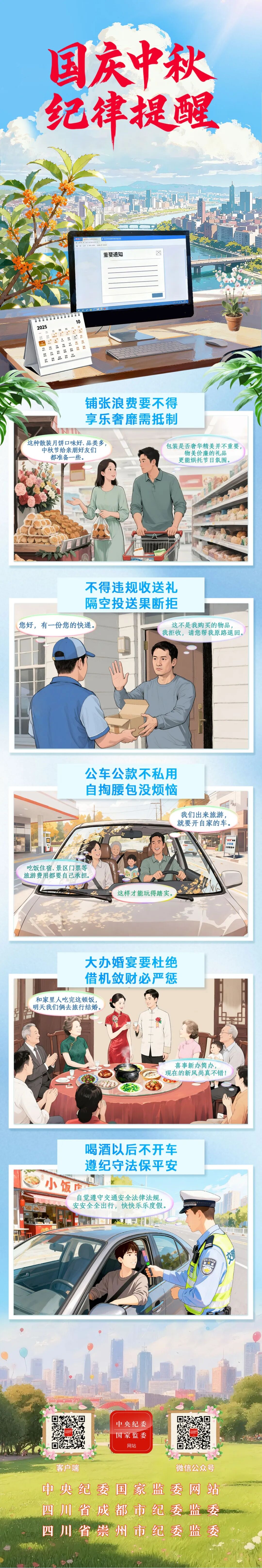 【廉洁“微课堂”】国庆中秋纪律提醒