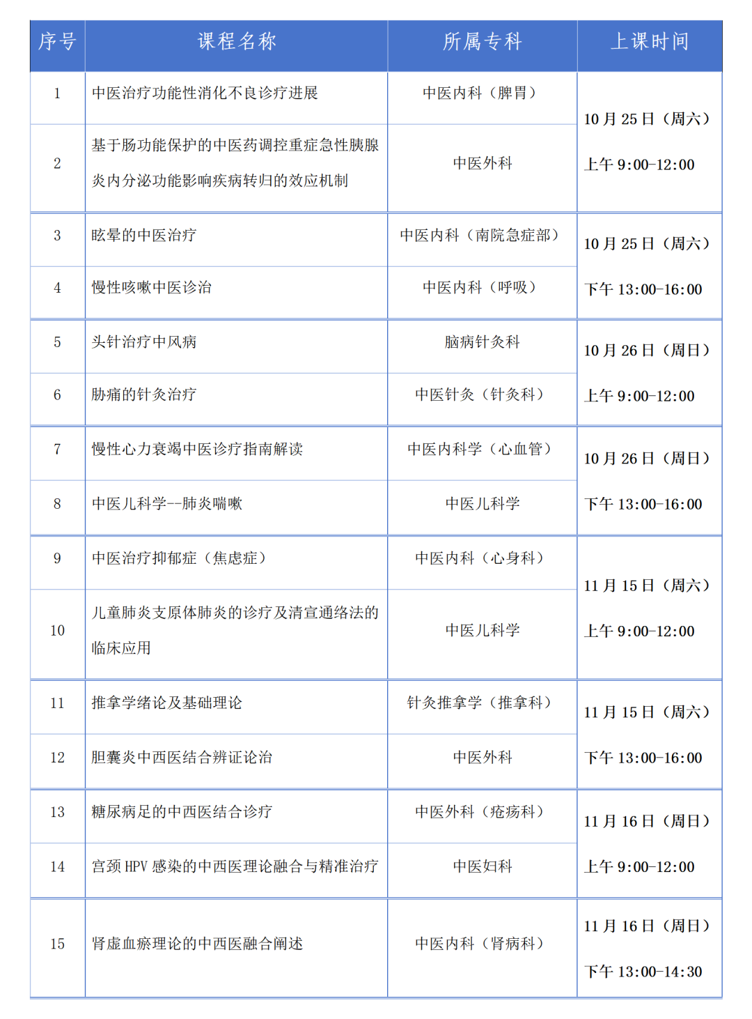 为贯彻国家及天津市中西医结合政策,根据《市卫生健康委关于组织开展西医学习中医短期培训的通知》(津卫中综便函〔2025〕752号)通知要求,天津市海河医院拟于2025年10月25日-26日、2025年11月15日-16日举办“2025年天津市海河医院西医学习中医短期培训班”。本期培训班计划招生100人,报名满额即开班。相关工作安排如下: