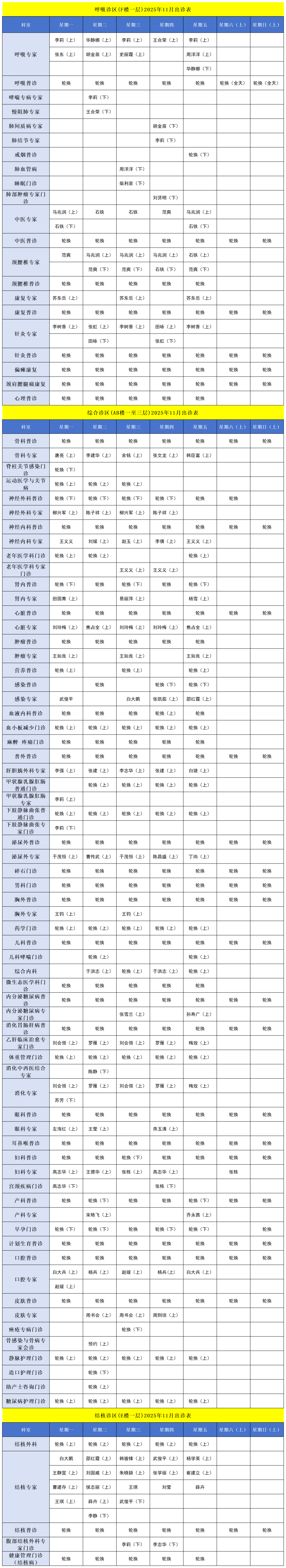 本表内容若有变动,以当日各科医师排班表及各门诊公告为准。