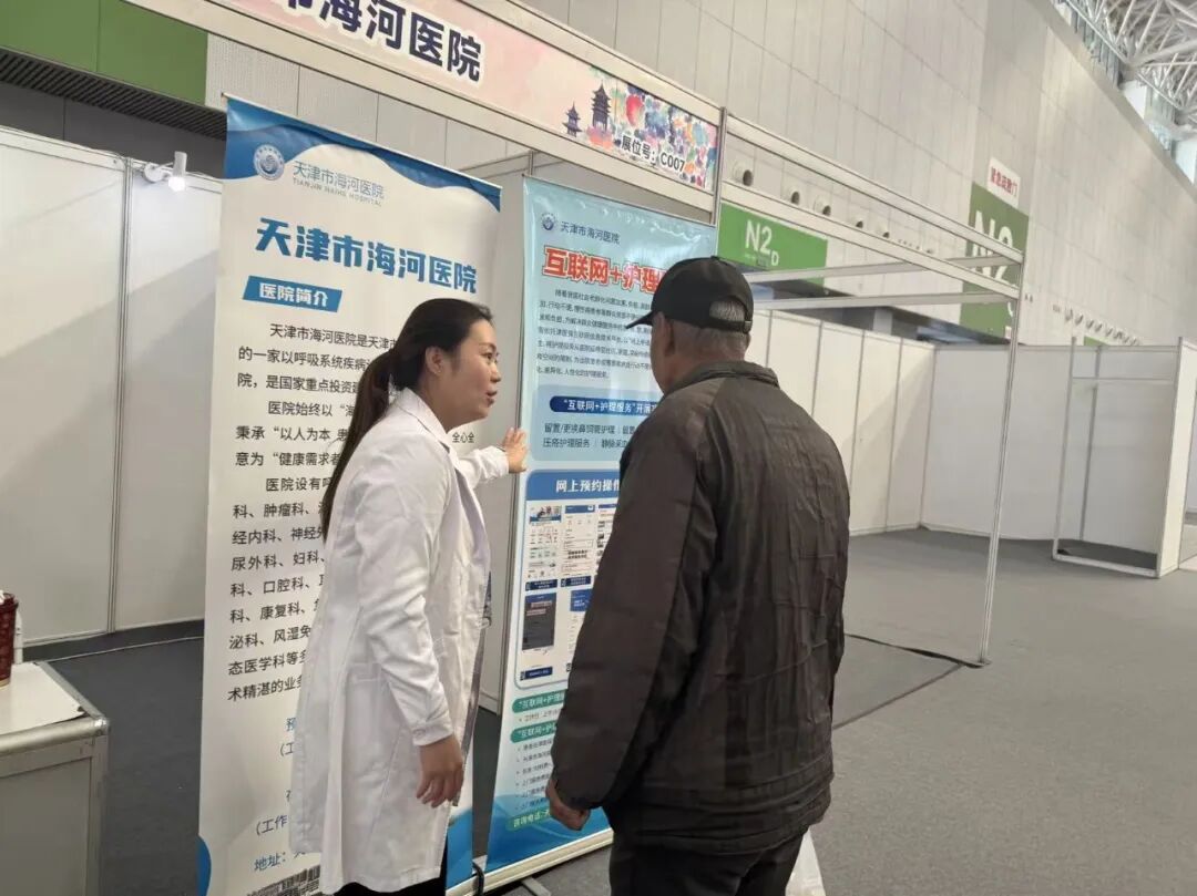 在公益展区内,天津市海河医院连续多日组织呼吸与危重症科、消化内分泌科、营养科、护理部的医疗与护理专家,为到场参观展览的老年人提供呼吸数字疗法、内分泌、营养膳食、互联网+护理等多方面咨询服务。医护人员耐心细致地为老年居民提供健康咨询和科普宣教服务,将专业的医疗知识和温暖的健康关怀直接送到老人身边。