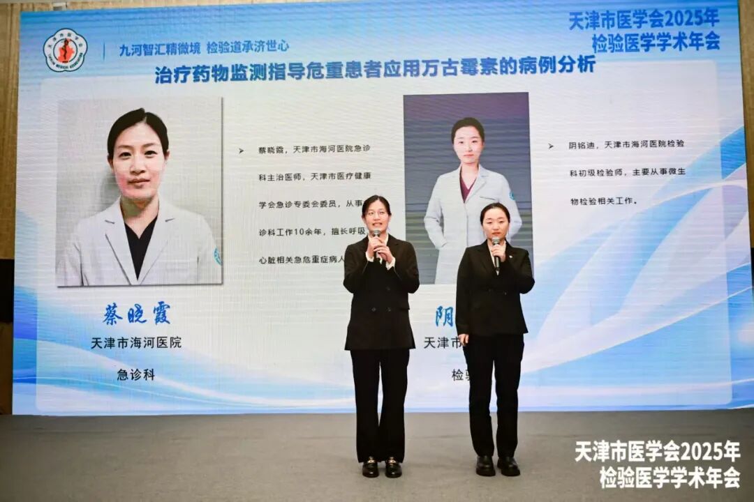 天津市医学会2025年检验医学学术年会上,我院急诊科医师蔡晓霞和检验科技师阴铭迪合作参赛,在数十名精英医师的角逐中脱颖而出,入围“精准检验·创新赋能”青年医师案例分析决赛,标题为《治疗药物监测指导危重患者应用万古霉素病例分析》,此病例体现检验与临床紧密协作患者转危为安的经典案例,在专家的指导下,经过两位医生卓越演讲,一路过关斩将,荣获三等奖。