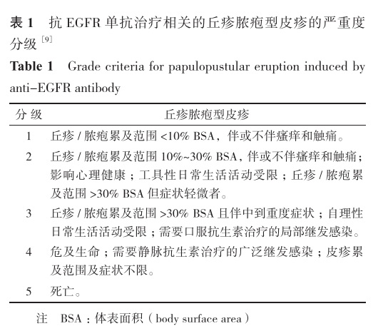 抗EGFR单抗治疗相关的皮肤不良反应的临床表现及严重程度分级