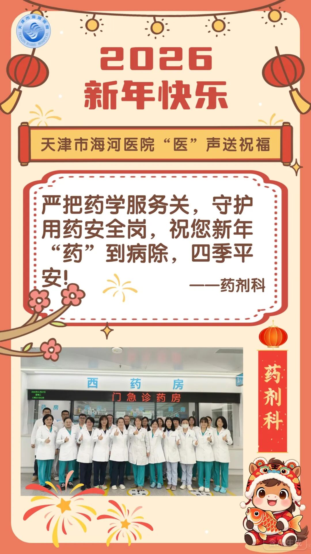 马年新春至,药师伴您行,愿您和家人新岁无病痛,用药皆安心,三餐有味、四季无恙,马年大吉,平安顺遂!