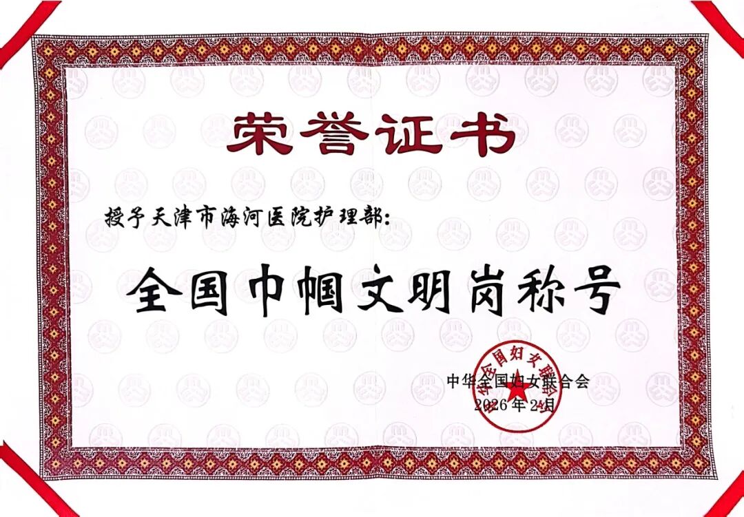在春风送暖、万物复苏的美好时节,我们即将迎来第116个 “三八”国际妇女节。在这致敬巾帼、礼赞芳华的日子里,天津市海河医院护理部喜获“全国巾帼文明岗”国家级荣誉称号,这份沉甸甸的荣誉,既是对全体护理人员辛勤付出的充分肯定,更是对海河医院巾帼医者坚守初心、守护健康的最高褒奖。
