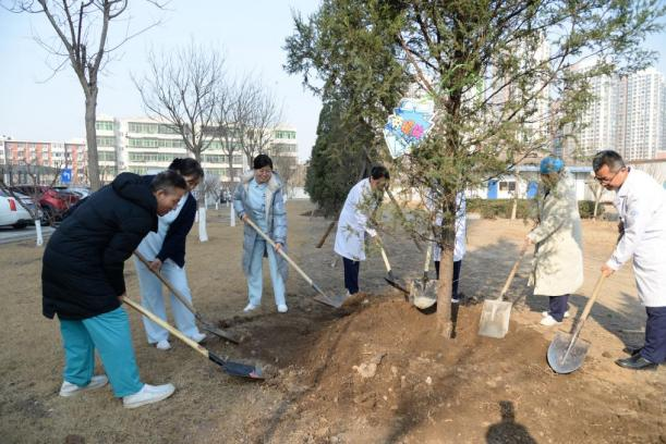 新栽下的树苗错落有致、迎风挺立,为春日的院区增添了勃勃生机。它们不仅承载着大家对美好环境的向往,更象征着医院职工团结一心、互助互爱的精神风貌。