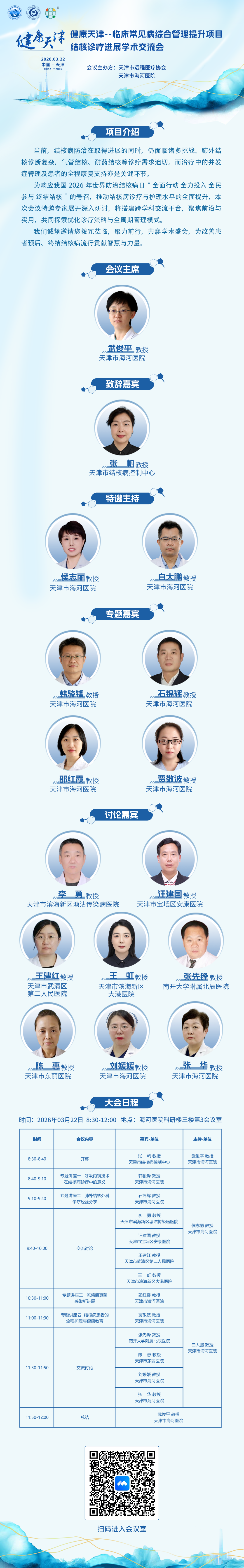【会议通知】3月22日健康天津——临床常见病综合管理提升项目结核诊疗进展学术交流会,欢迎参加!